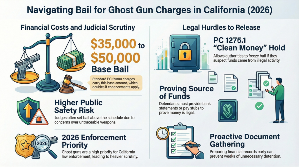 When a judge sees a “ghost gun” or “unserialized firearm” on the police report, they may view the defendant as a higher public safety risk. They often worry that untraceable weapons are linked to larger criminal networks. This can lead to the judge setting bail much higher than the standard “schedule” amount.